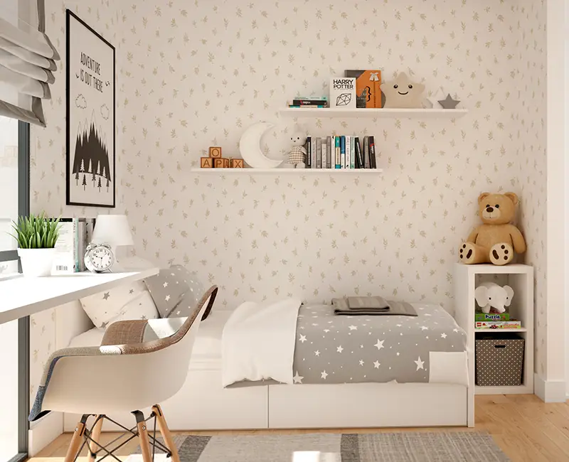 Los dormitorios, refugios íntimos, con una luz cuidada y el tamaño necesario para descansar, estudiar y disfrutar de ese pequeño universo personal que cada uno necesita.