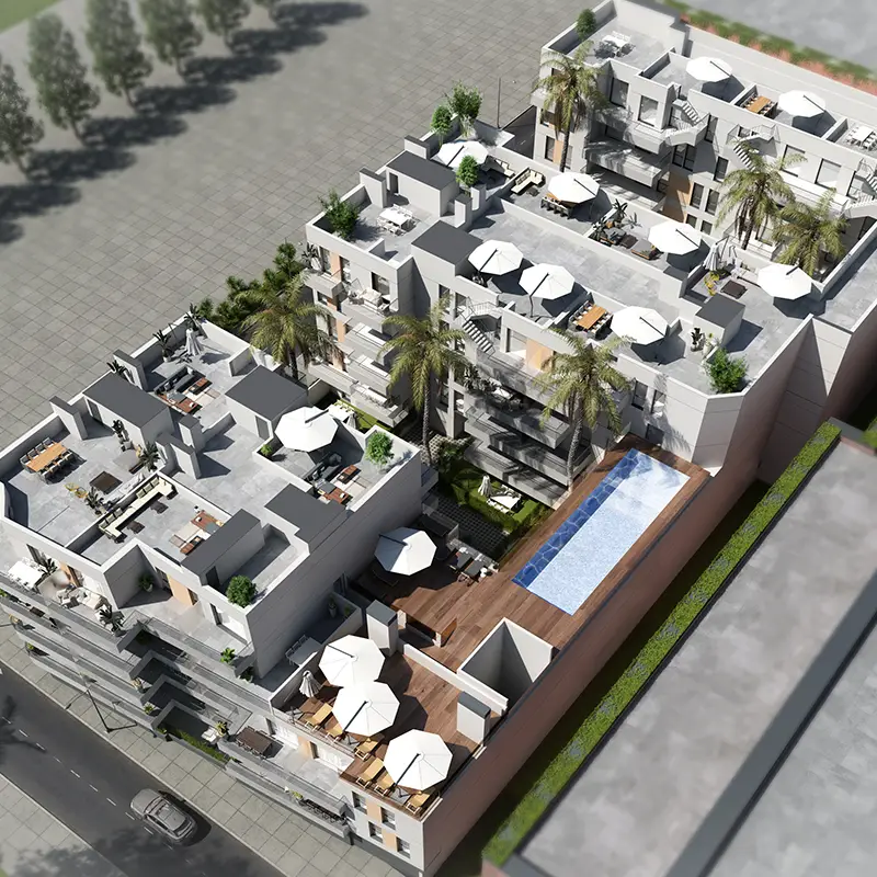 Vivir en Tahira Maris es abrir la puerta a un ritmo distinto: el pulso íntimo de la ciudad que se mezcla con la calma de San Vicente de Raspeig. Con 93 viviendas en régimen de cooperativa, Tahira Maris se ha diseñado para quienes buscan claridad arquitectónica, luminosidad y espacios pensados para el día a día.